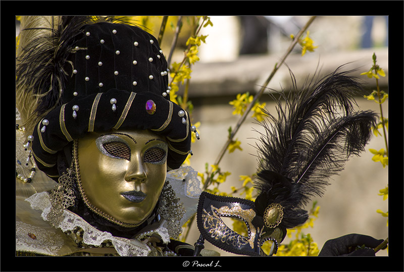Eh ben beau programme, continue Pour la 6 Globalement belle photo Tu dis toi même qu'il y avait beaucoup de monde (A Venise au festival c'est une constante même si, ici, on est dans le Cher ) donc il est difficile d'isoler le sujetDeux solutions: -1- te rapprocher ou zoomer pour remplir le cadre avec le sujet. En général, les gens qui débutent en photo ont un peu peur de remplir le cadre et de se rapprocher (physiquement ou par zoom interposé) Hors, a Venise les "masques" sont là pour être vus , admirés et photographiés, ça m'étonnerait qu'ils te "jettent" surtout si tu leur souris, il n'y a donc pas d'inconvénient a se rapprocher, au contraire De plus, masqués, les gens ne peuvent te poser de problèmes en matière de droit a l’image Donc colle leur ta lentille sous le nez -2- recadrer au post traitement pour éliminer la foule et le "hors champ" (perso je préfère la première solution mais on peut pas toujours le faire) Ici, il ne m'apparait pas essentiel de conserver la totalité du drapé de la coiffure Je te propose deux essais sur lesquels j'ai tenté de respecter la sacro sainte "règle des tiers". Il est préférable, au début, de la respecter. Avec l'expérience, et en étant en mesure de le justifier, tu pourra la transgresser (d'ailleurs une règle est faite pour ça Ici je conserve le cadrage "paysage" de ton original L’arrête du nez est sur la ligne du tiers gauche, les yeux quasiment sur celle du tiers haut, la bouche presque sur celle du tiers bas La, j'utilise le format carré, qui va en général assez bien a un portrait Le visage est positionné sur la ligne du tiers gauche. Le format carré permettant de donner plus d'importance au drapé de la coiffure Pour le reste, pour moi expo OK, MaP OK [noindex] A77 + Alpha 200 + Sony 16x50 f/2.8 SSM + Tamron SP 90mm f/2.8 Macro DI + Tamron 11x18 f/4.5-5.6 + Sony SAL 18x70 & 75x300
