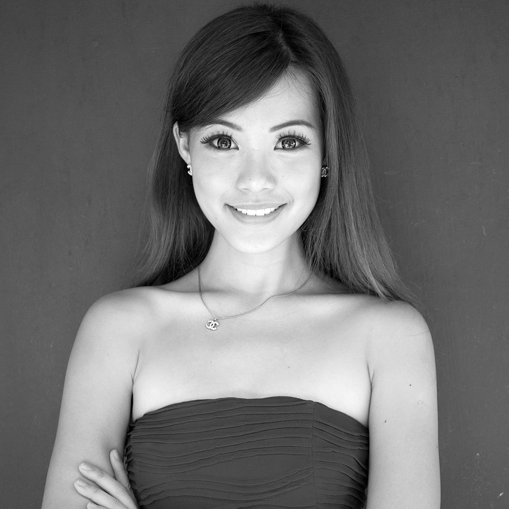 - Les images que je réussie le mieux sont celle qui sont préméditées, sur celle-là il y a eu une bonne collaboration, elle s’est rapprochée de la table (probablement un peu trop comme on a pu en discuté sur le fil) et s'est éloigné un peu de la fenêtre afin d'avoir un fond plus unis, on a également discuté un peu sur le sourire. Typiquement je suis le seul européen sur ces shoots, du coup on a essayé des sourires un peu différents de ceux qui sont attendus par une audience asiatique (ci-joint la pose que le photographe qui était juste après moi a choisie).Je l’avais cadré avec les bras croisés (car elle a un caractère assez sûre d’elle) mais au final je trouvais que ça faisait trop « carré » et donnait l’impression qu’elle est plus large qu’elle ne l’est. Et voilà .