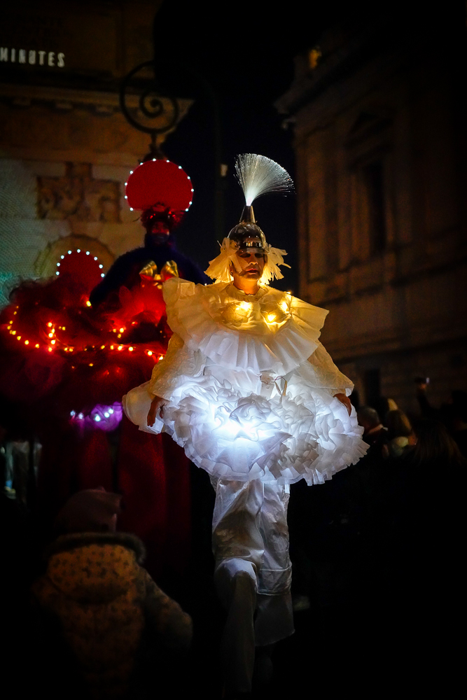 Après lors de la fête des lumières de Montpellier (Cœur de Ville en Lumières ça s'appelle), ce que j'aime beaucoup est le défilé des échassiers géants et lumineux… par contre c'est pas simple de les prendre en photo et cette année l'A7R III m'a bien aidé