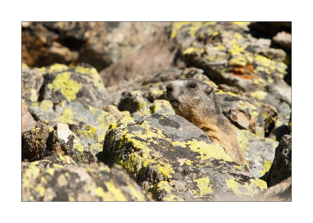 C'est la perspective écrasée du 300mm + TC + Aps-c. Et entre moi et les marmottes il y avait la pente.