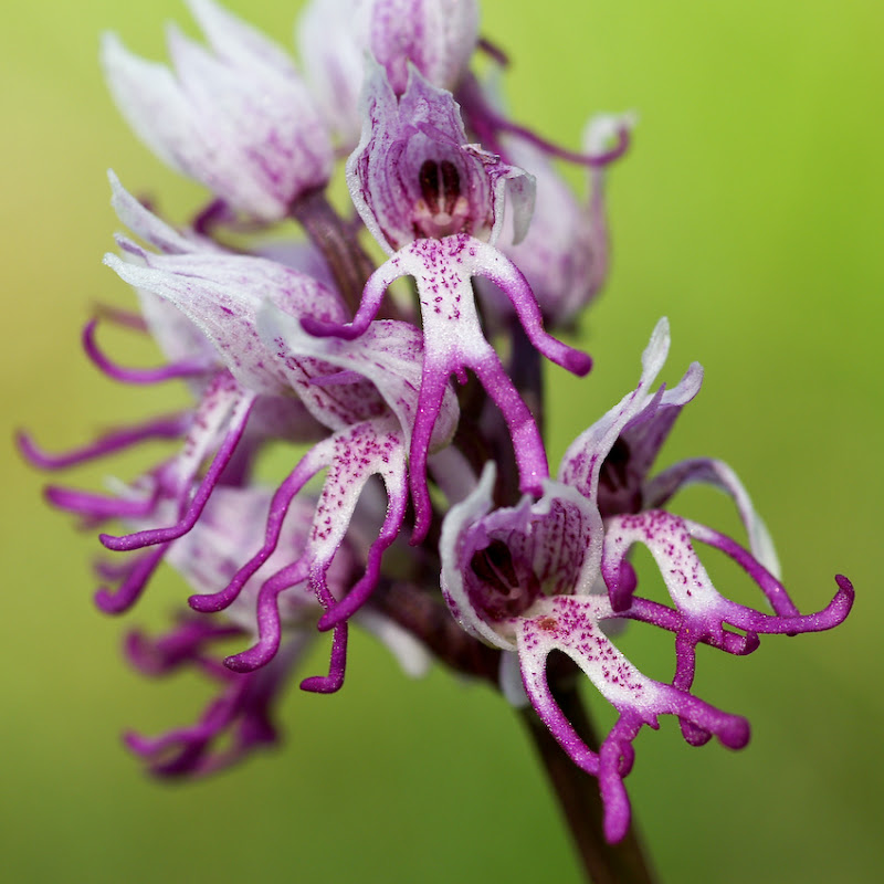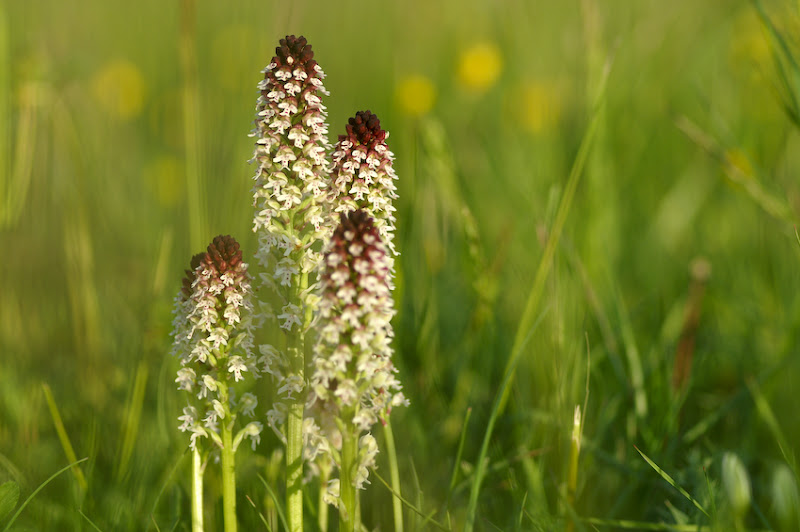 Non justement il manque Aceras (Orchis) anthropophurum. 1 Orchis simia 2 Orchis ustulata 3 Orchis purpurea 4 Orchis militaris Si plusieurs viennent de la même station, il serait intéressant de chercher les hybrides La 2 est un classique sympa pour le contraste de couleurs, dommage qu'une inflorescence soit floue. Je regrette le haut de l'inflorescence coupé pour O. simia et les deux O. militaris presque superposés. Pour la 3, je ne comprends pas le cadrage.