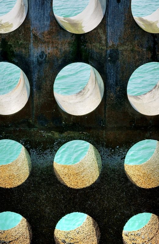 J'apprécie que la photo ne soit pas parfaitement dans l'axe, ça donne un côté encore moins conventionnel. La couleur de l'eau est pas mal et la texture très graphique, surtout le haut bleu et les algues/mousses au milieu ! A7RII