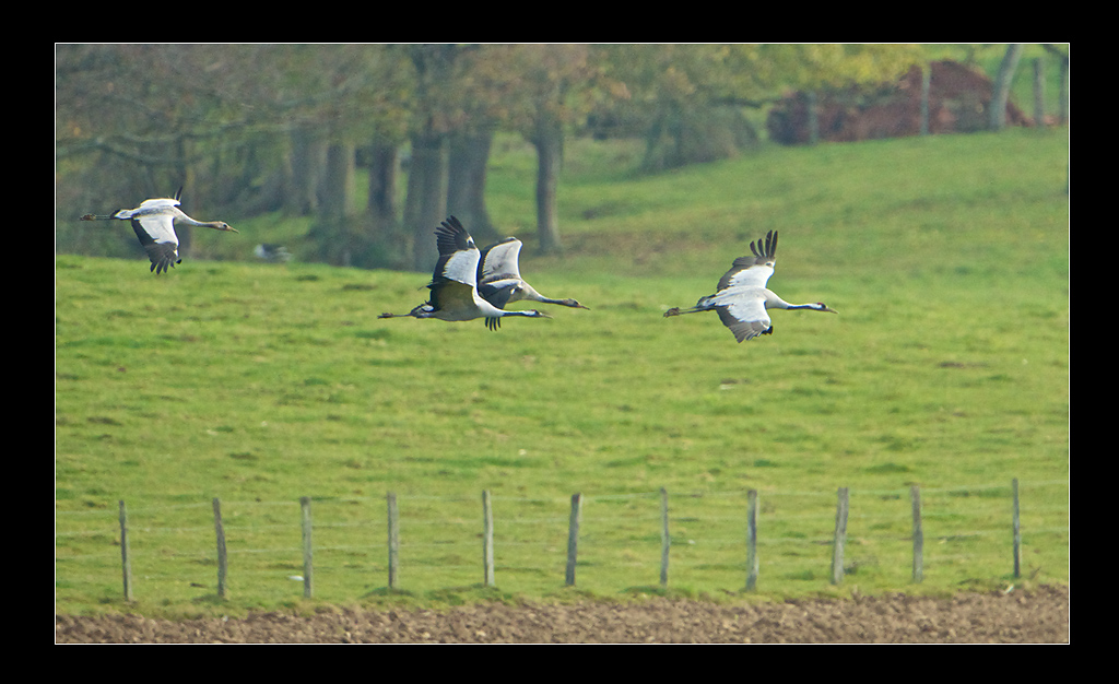 La 11 n'est pas en reste non plus ; c'est marrant, les 4 grues sont dans une phase du décollage différente. Par contre, au premier coup d'oeil on a l'impression d'un photo séquence, avec le même seul individu sur 4 clichés différents recomposés.