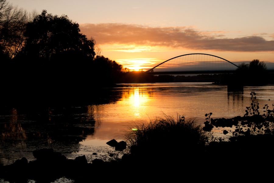 Bien vu le couchant au tombant de la courbe du Pont de l'Europe.