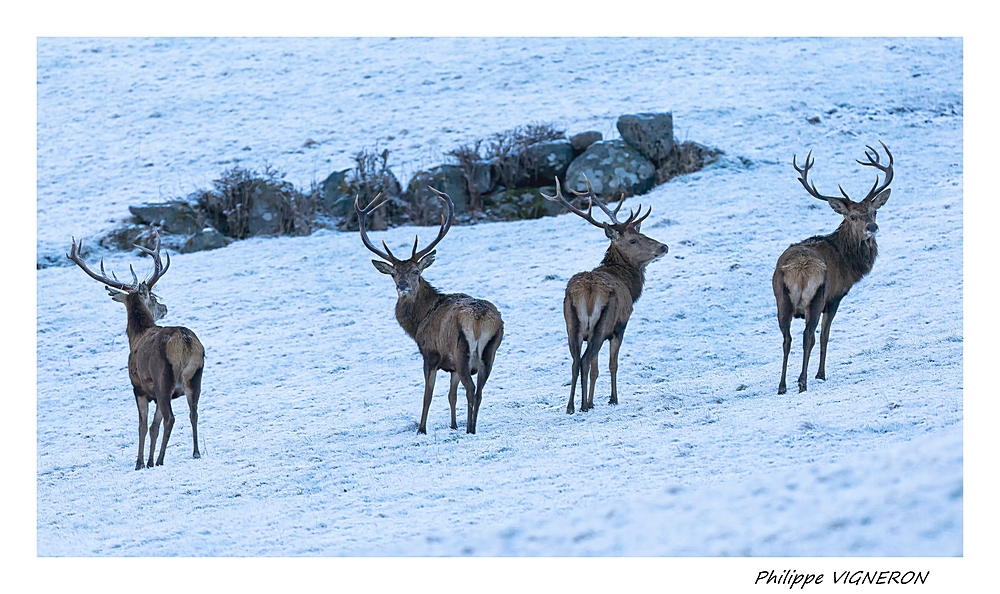 4 Cerfs en vadrouille hivernale dans les Vosges
