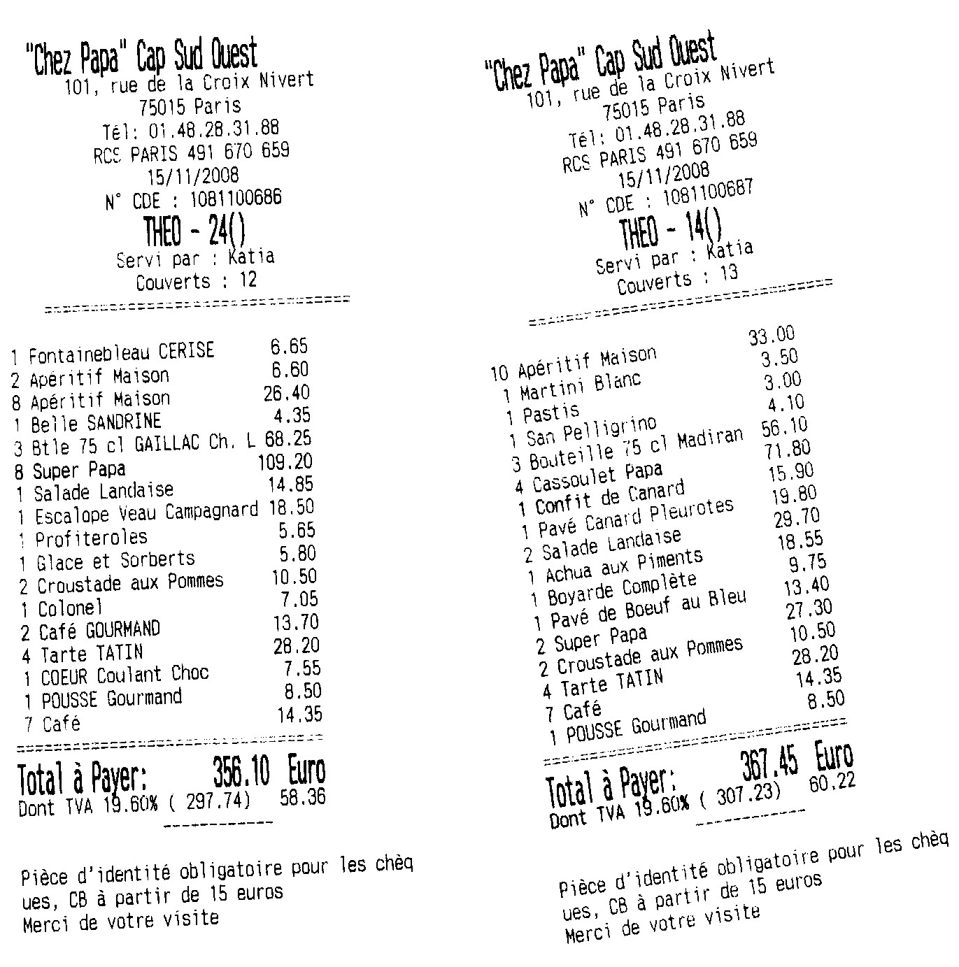 Ils sont donc consommés pour 60 euros d'apéro ! Rhââ les fourbes !