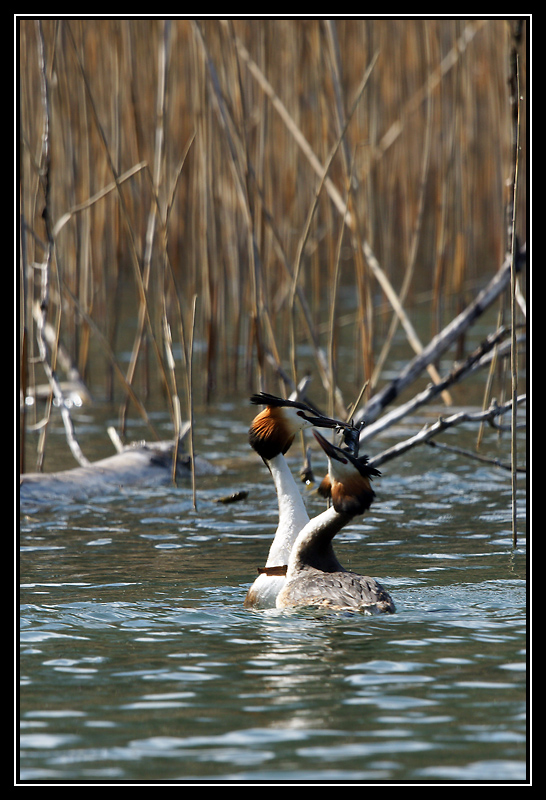 le mâle plonge récolter une algue et biens l'offrir à sa belle, et tous deux entament une danse au dessus de l'eau (pure lévitation!) super moment d'une dizaine de secondes, un peu prise au dépourvue (et peut être pas assez calée pour la prise de vue), j'avais heureusement mis sur le mode rafale!
